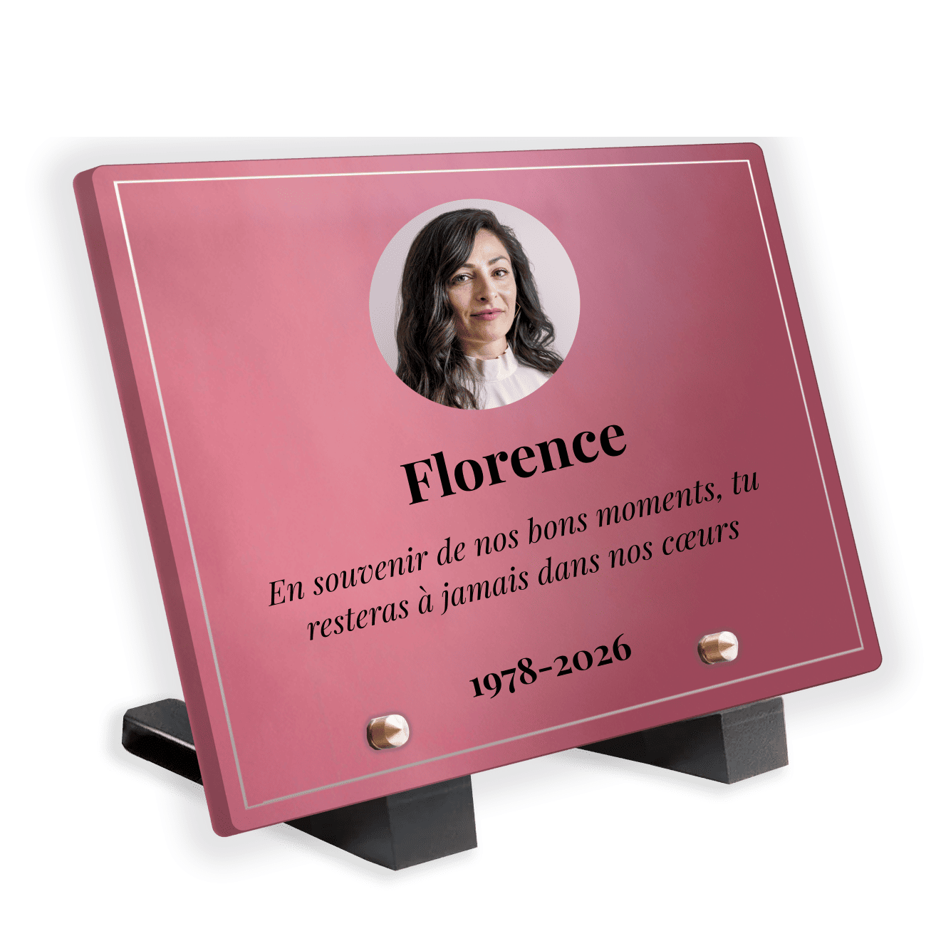 | Choisissez votre forme de plaque | Rectangle [17 x 13 cm], Rectangle [21 x 14 cm], Rectangle [30 x 20 cm], Livre [30 x 20 cm], Coeur [23 x 23 cm], Nuage [23,5 x 15,7 cm] |