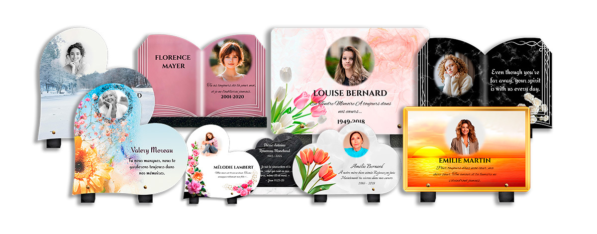 Plaques funéraires en ligne personnalisées en plexiglas ultra résistant